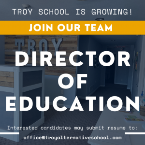 As TROY School continues to grow to meet the educational needs of our community, we are looking for a Director of Education to join our team. Interested candidates should sumbit an email with “Director of Education” in the subject line. The individual’s most recent resume and a cover letter should be submitted to office@troyalternativeschool.com