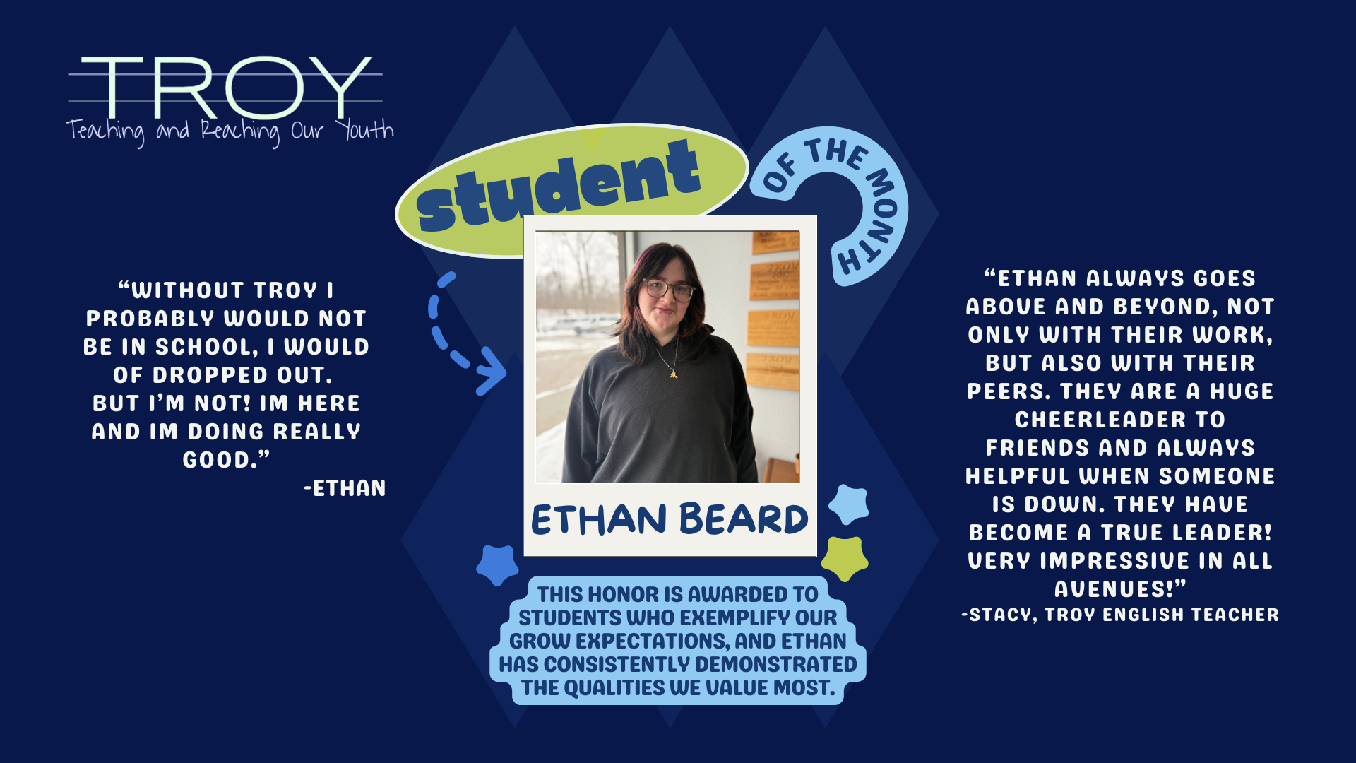 Congratulations to TROY School’s January STUDENT OF THE MONTH, Ethan Beard !